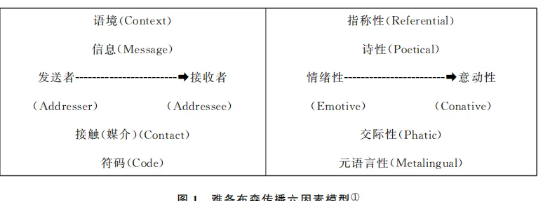 上述问题实际上源于霍尔对符码(元语言)和语境的混淆。在信息论模型中,传播是一个信号传输的物理过程,语境并不存在。因而霍尔在此基础上又引入系统论,把线性的传播过程拓展为更为复杂的系统过程,而语境则区别于输入的信息,是在系统中预先编制好的程序。与单一线性的数学模型不同,符号学家雅各布森(Roman JaG kobson)所提出的传播语义学模型(见图1)对语境进行了专门的讨论。在该模型中,传播过程由发送者、接收者、语境、信息、媒介和符码六个要素组成,而不同的要素偏向分别会导致传播活动本身偏向情绪性、意动性、指称性、诗性、交际性或元语言性。雅各布森模式的核心思想与霍尔的如出一辙—意义不只存在于传播的信息中,而是存在于包含六个要素的全部交流行为中。不同的是,霍尔所说的语境,并不限于雅各布森模式中“语境”所指涉的具体情境,而是包含了六因素中除了信息之外所有因素的一种“总体语境”。然而在具体论述中,霍尔却将“符码”与他所论述的这种总体语境混淆在了一起。符码(code)是与信息直接相关的解释规则,是意义解释的直接要求,它从属于总体语境但又不能完全代表总体语境。霍尔所说孪生兄弟的交流和数学家的交流的语境差异,不仅在于兄弟之间积累了丰富的总体语境,更是由数学符码的元语言规则所规定:数学符号是一种强编码,为求表意的清晰和固定,它不容接收者有自由解释的空间,因此,与信息和符码无关的语境自动被屏蔽在了传播过程之外。同理,霍尔所谓繁复的、多机构(技术上先进)的文化,描述的正是一种强编码文化,如西方现代企业出于工作的效率需要,分工细致、机构繁多,要求传播活动将不直接相关的语境排除在外;中国文化的复杂却并不在编码规则的细密与“先进”,而是总体语境的长期积累。弱编码为语境在传播活动中的充分参与提供了前提,而总体语境本身的极度丰富导致了中国高语境的文化模式。