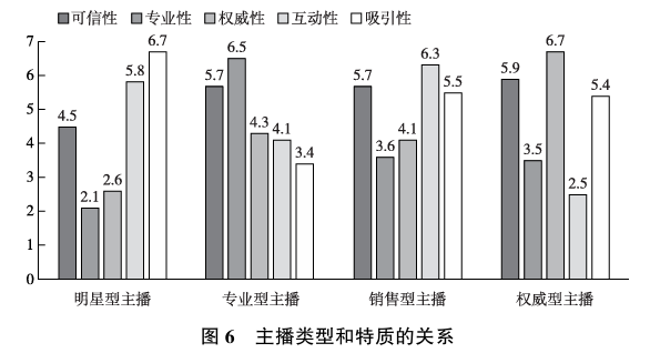 由此可见, 每种类型主播的核心特质具有显著差异。 因此, 每种类型主播应根据自身类型发挥核心特质, 形成清晰的定位, 打造个人竞争优势, 而非盲目模仿其他主播。