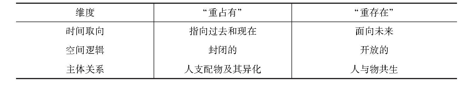 表2 弗洛姆的“重占有”与“重存在”的生存方式对比